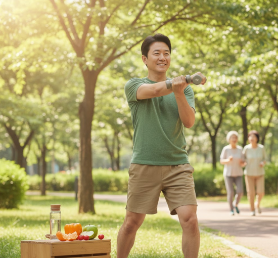 - 하체 근력 운동 (스쿼트 등): 남성 호르몬 균형 유지, 신체 활력 증진에 도움을 줍니다. 무리한 운동은 피하세요.
