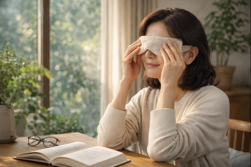 A3: 20-20-20 법칙과 함께 따뜻한 온찜질(40~45도, 5~10분)은 눈 주변 근육을 이완시키고 마이봄샘 기능을 개선해 눈 피로와 건조증 완화에 아주 효과적입니다. 의식적으로 눈을 자주 깜빡이거나, 실내 습도를 적정하게 유지하는 것도 도움이 돼요.