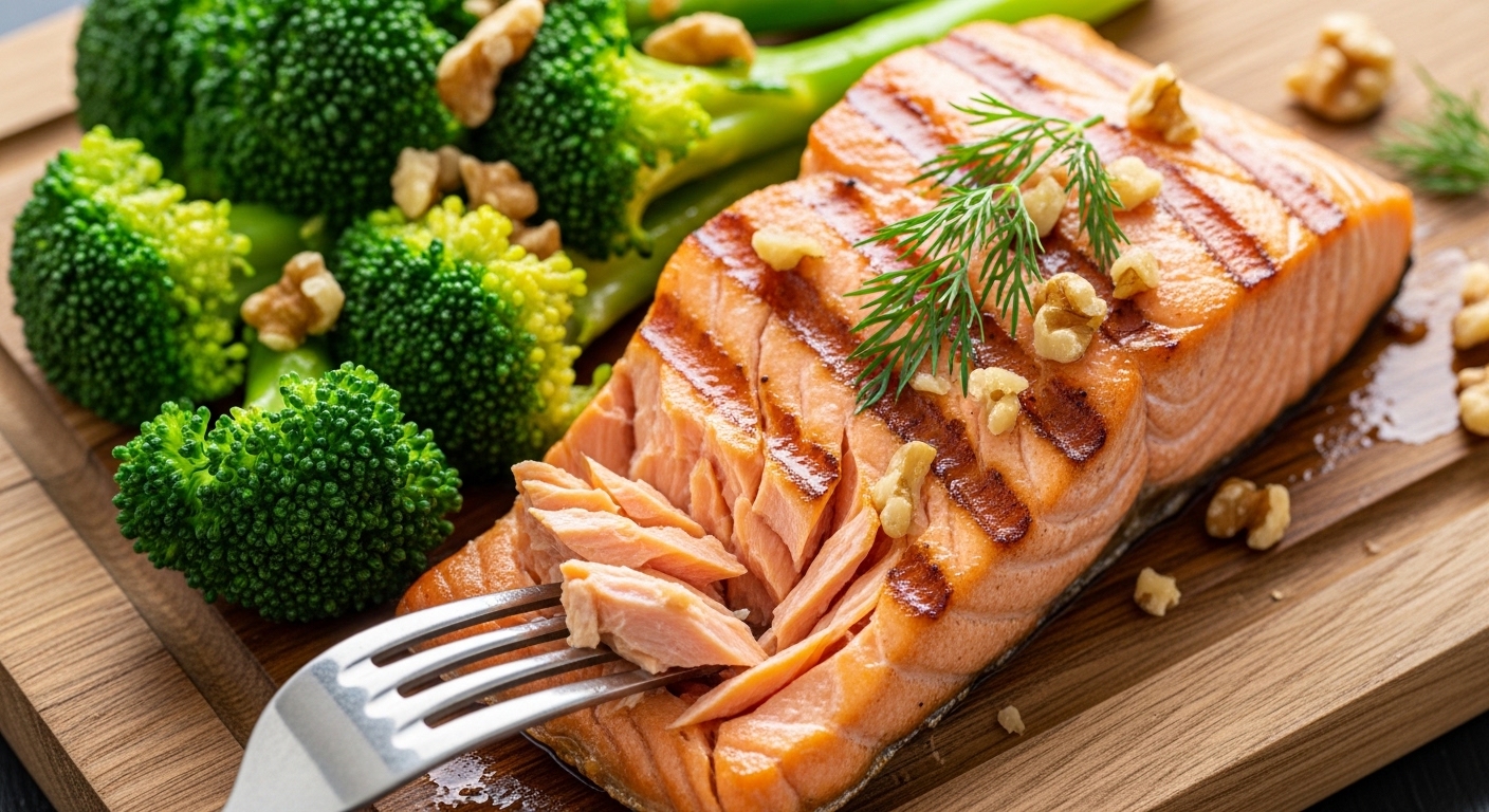 연어, 고등어 등 등푸른생선은 오메가-3 지방산이 풍부해 간의 염증 감소와 중성지방 수치를 낮추는 데 필수적입니다.