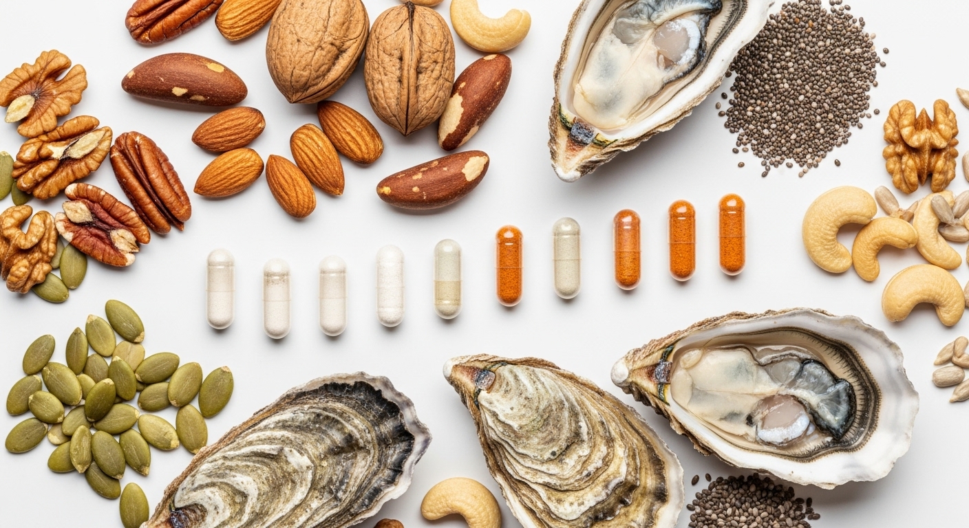 1. 아연(Zinc) & 셀레늄(Selenium): 전립선 건강과 남성 활력의 핵심